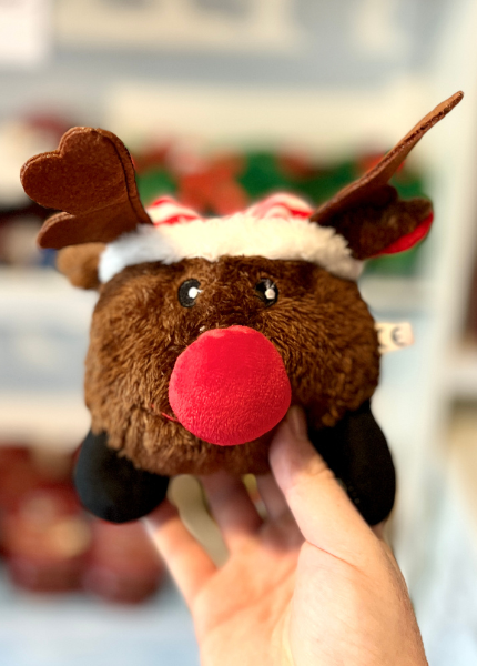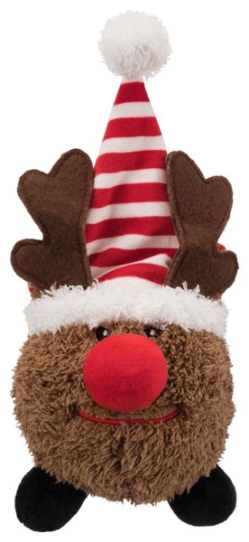 Plyšová hračka pro psa se zvukem (uvnitř všité pískátko). 3 druhy: Santa, sob, sněhulák. Materiál: polyester. Velikost: 18–29cm.