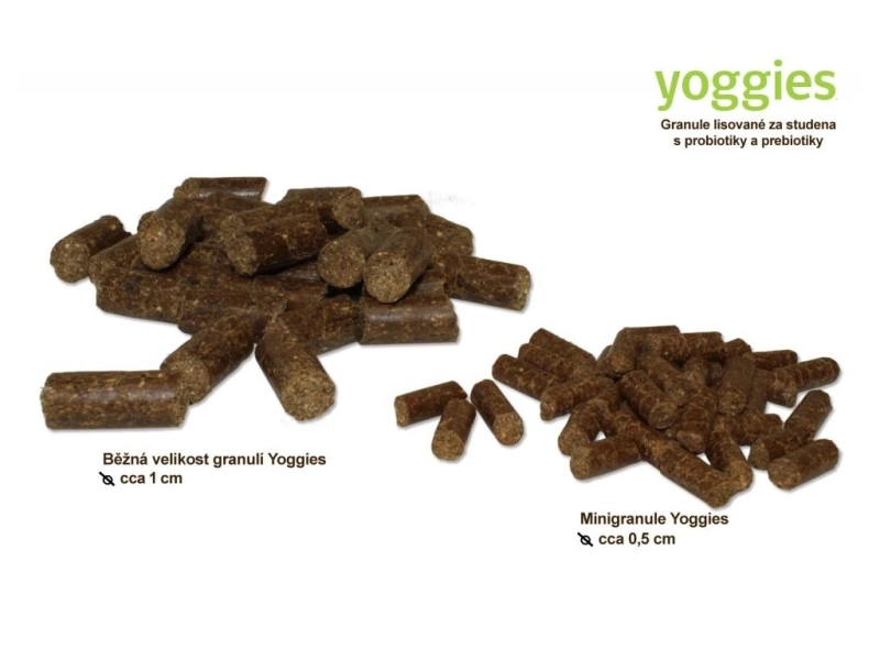 Granule Yoggies jsou vyráběny šetrným způsobem - lisováním za studena. Díky tomu si zachovávají přirozenou masovou chuť a důležité živiny. Vyrobeny jsou pouze z kvalitních farmářských surovin bez obilovin, sóji a umělých přísad. Obsahují 86% kvalitního masa (před sušením). Granule jsou snadno stravitelné, a díky probiotikům posilují imunitu a zdravé trávení v každém psím věku.